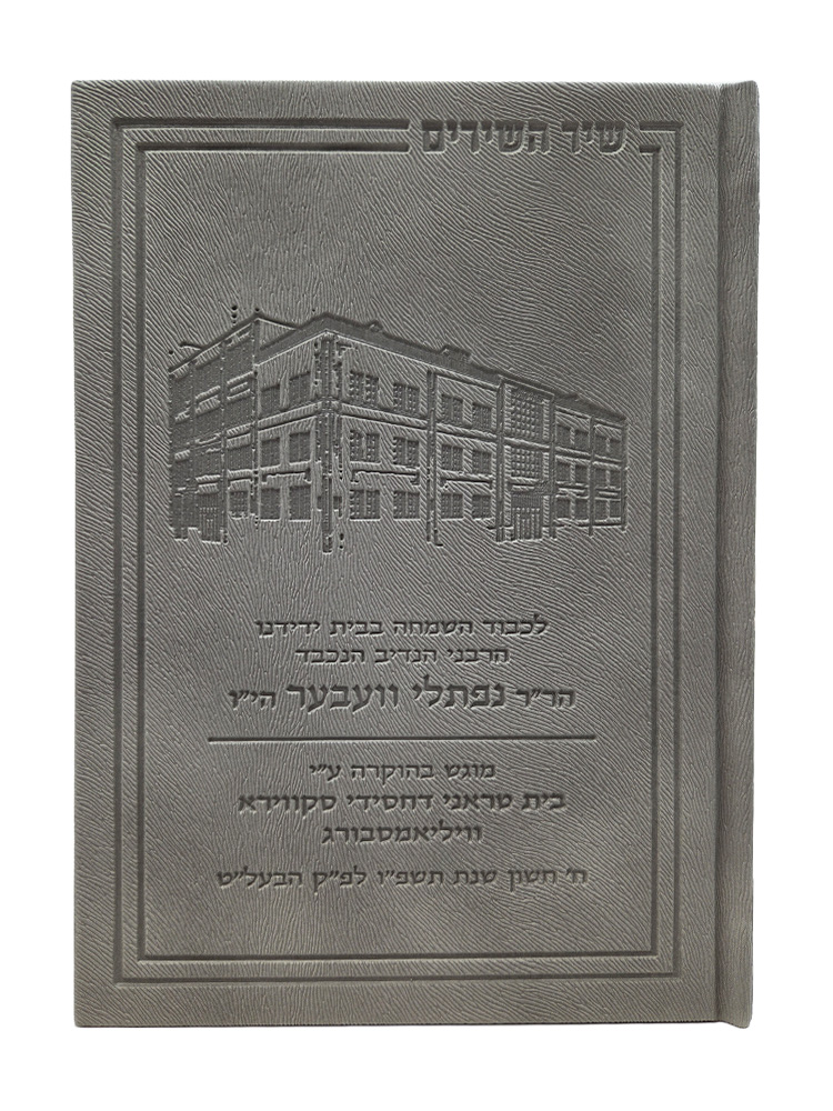 Gray leatherette cover with border design and full page monogram and inprint embossed