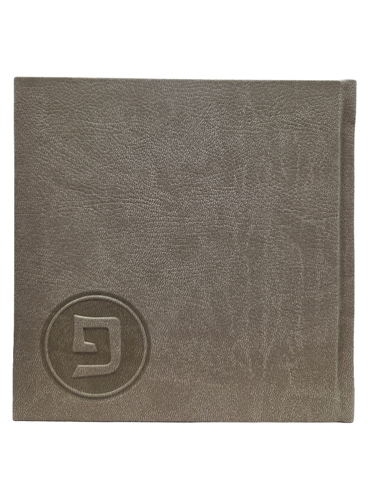Beige taupe designed leatherette cover with an art inittial on the left handed corner